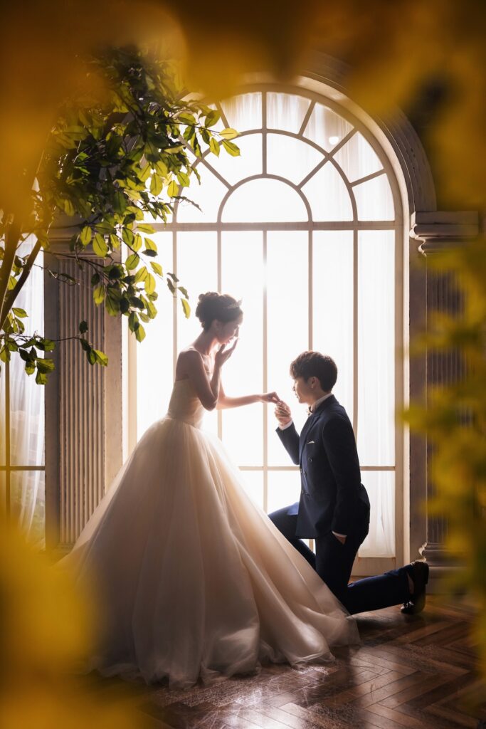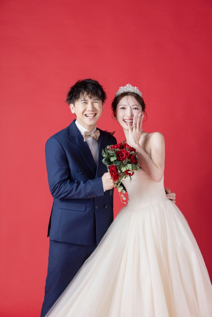 やわらかな色合いがスタジオの世界観とも美しく調和し、おふたりらしさがより引き立つスタイリングとなりました。
