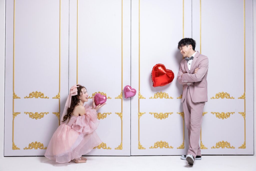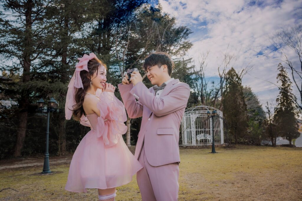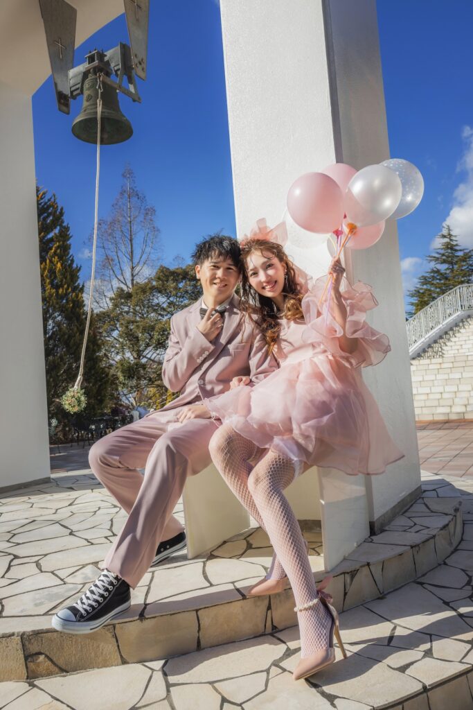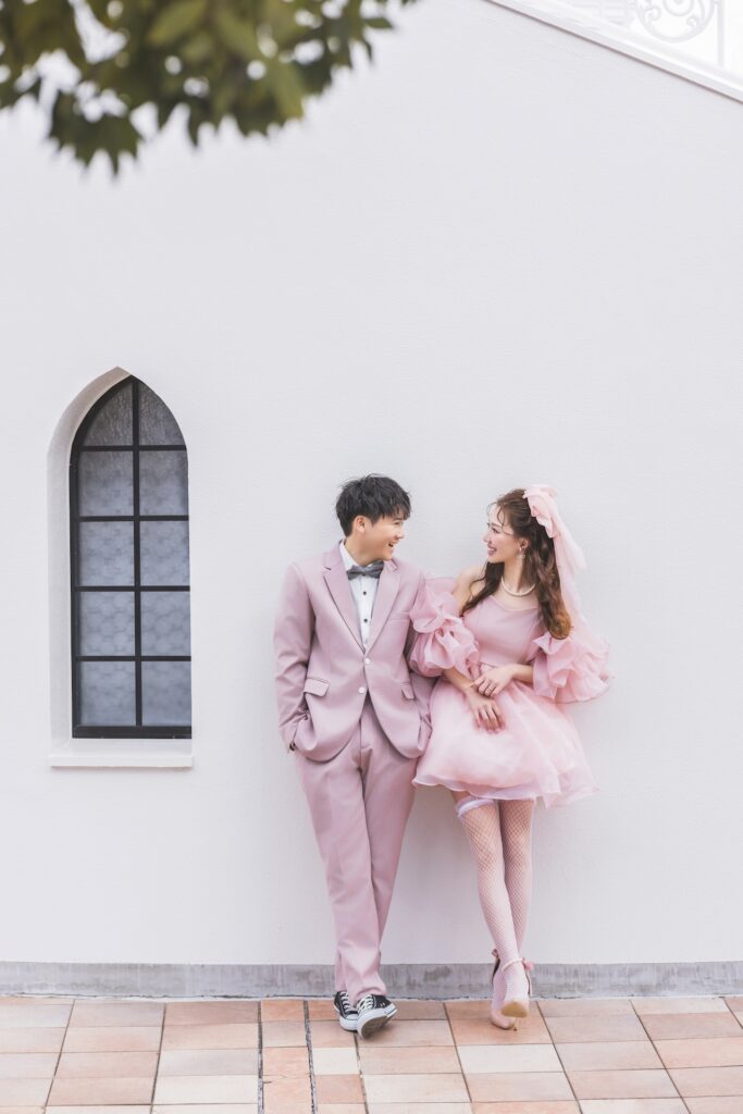 ピンクのドレス&タキシードはお二人のお持ち込み♡
